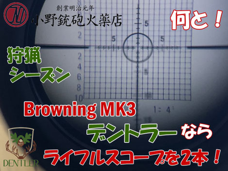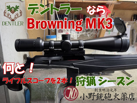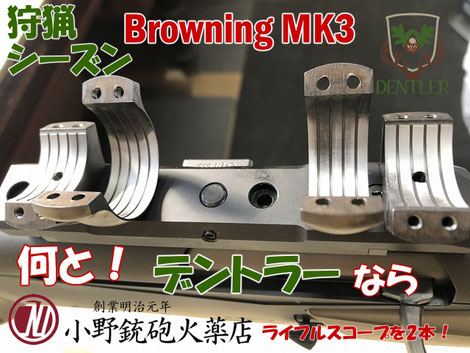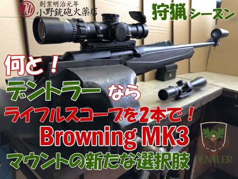 本州もいよいよ狩猟シーズン。山形県新庄市に本社を構える小野銃砲火薬店様によるデントラーマウントのお取付けをご紹介します。巻狩り用のライフルスコープに加え、大口径のロングレンジ向けライフルスコープも使って見たいという欲求。ブログテーマはライフル銃、ブローニングバー(BAR)マーク3(MK3)でライフルスコープを2本!という記事です。今回のお客様、所持銃器はBrowning BAR MK3, 308Winにデントラーベースレールを導入済み。March 1-8x24に加え、ロングレンジ向けのスコープを追加導入したいとのご相談。それでは早速いってみます。